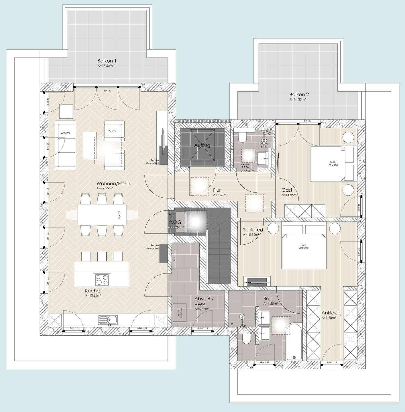 Die Penthousewohnung befindet sich im 2. OG / DG und ist von der Tiefgarage aus bequem mit dem Aufzug zu erreichen.