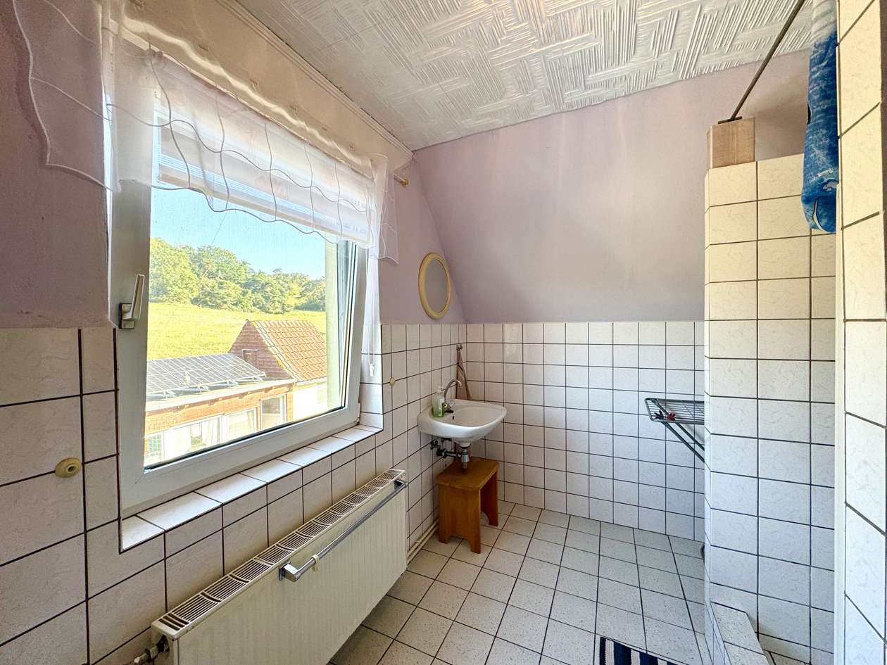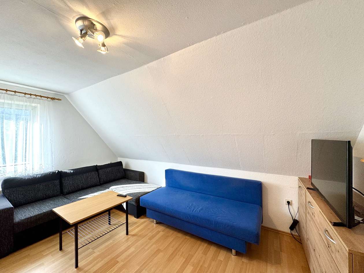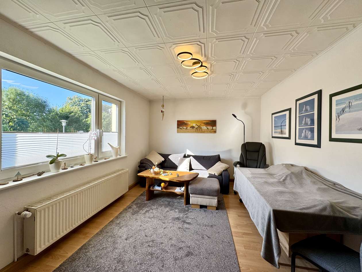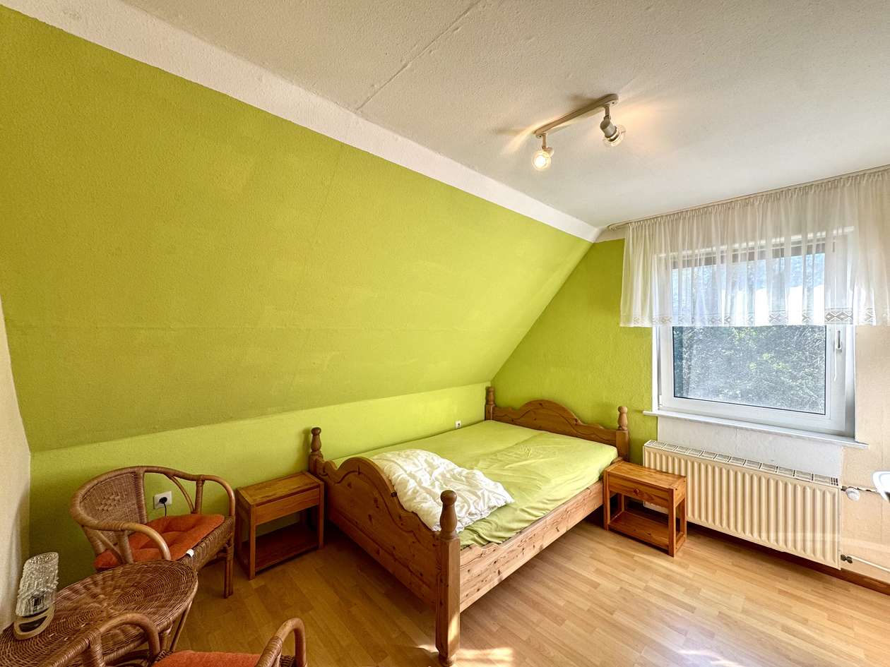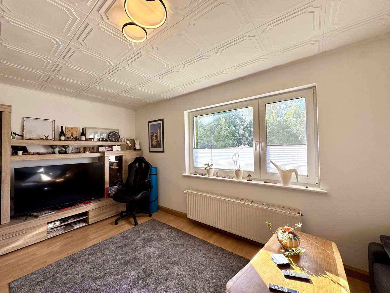 Die Immobilie gliedert sich in zwei Wohneinheiten auf. Im Untergeschoss befindet sich die modernisierte Einliegerwohnung, die bis 03/26 fest vermietet ist. Ab 04/26 steht das Objekt vollständig zur individuellen Nutzung zur Verfügung. Die Einliegerwohnung im Erdgeschoss umfasst ein Schlafzimmer, ein Wohnzimmer, eine Küche sowie ein Badezimmer und präsentiert sich dank der umfassenden Renovierungen in einem sehr guten Zustand. Das Obergeschoss bildet die Hauptwohnung mit drei Schlafzimmern, einem großzügigen Wohnzimmer, einer Küche und einem Badezimmer mit Dusche. Hier besteht Renovierungsbedarf, wodurch sich für die zukünftigen Eigentümer die Möglichkeit bietet, die Räume individuell nach den eigenen Vorstellungen zu gestalten und zu modernisieren.
