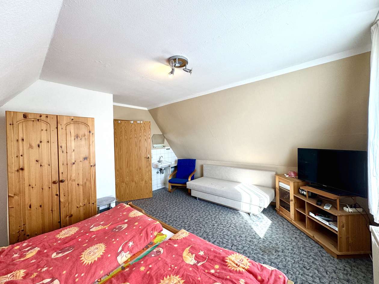 - Hauptwohnung mit 3 Schlafzimmern, Wohnzimmer, Küche, Bad mit Dusche im Obergeschoss