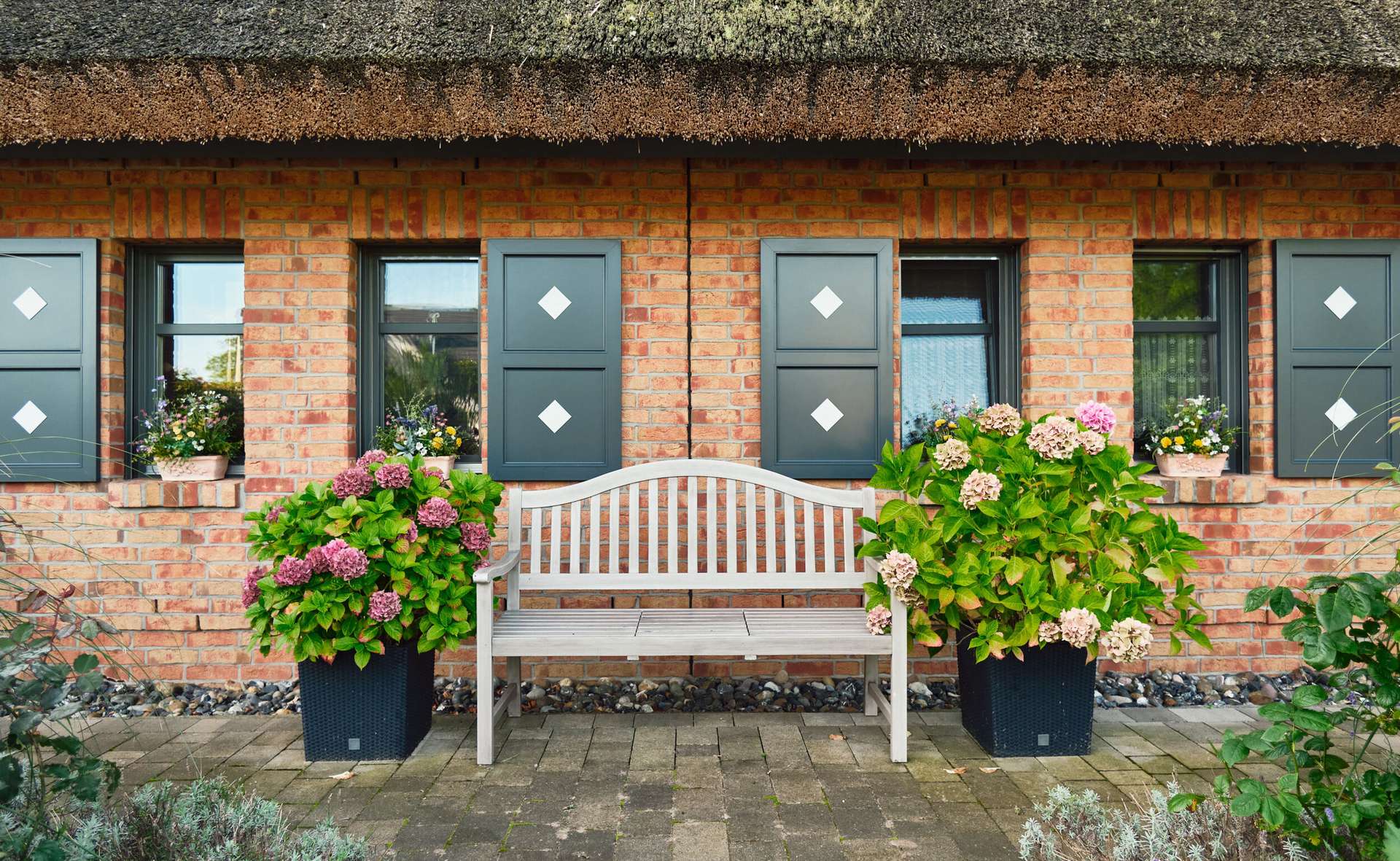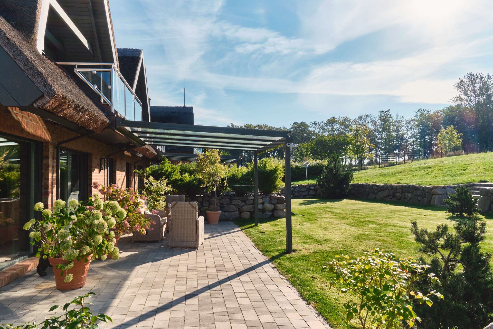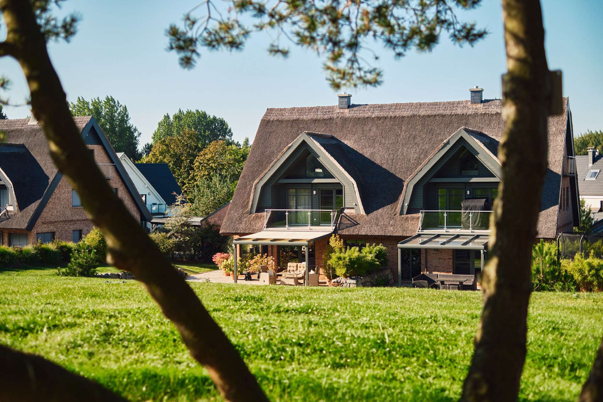 Repräsentative Strandvilla unter Reet mit hochwertiger Ausstattung und großzügigem Garten
