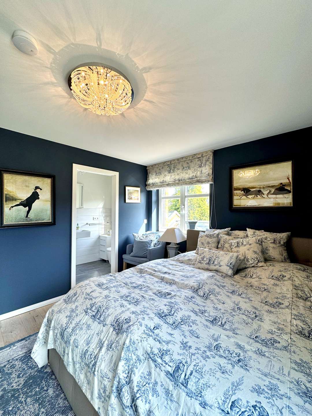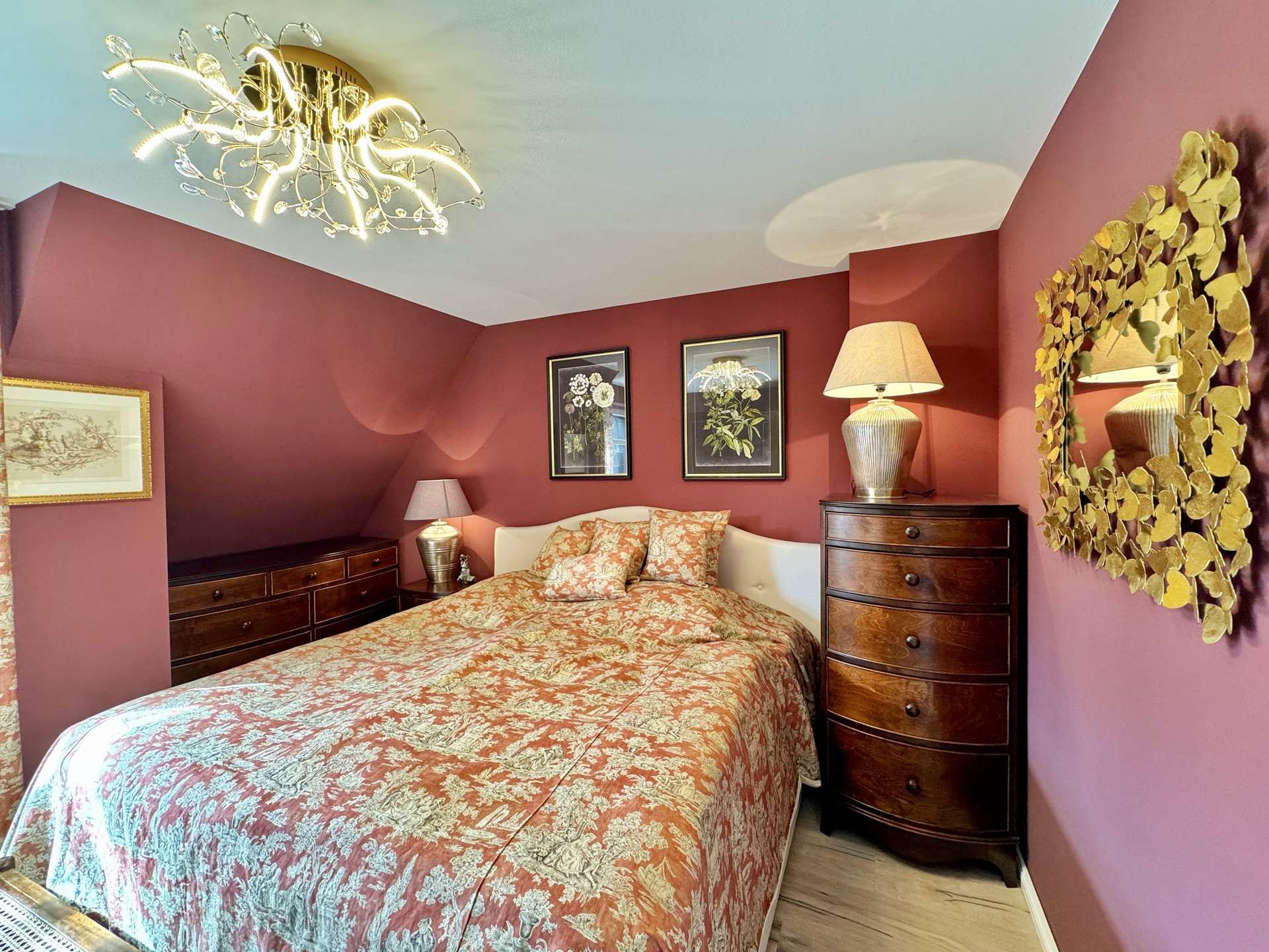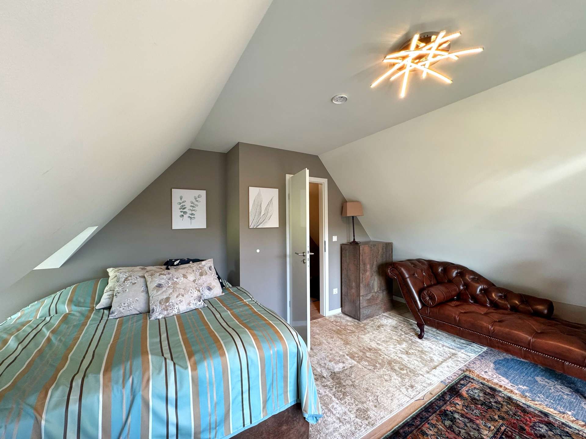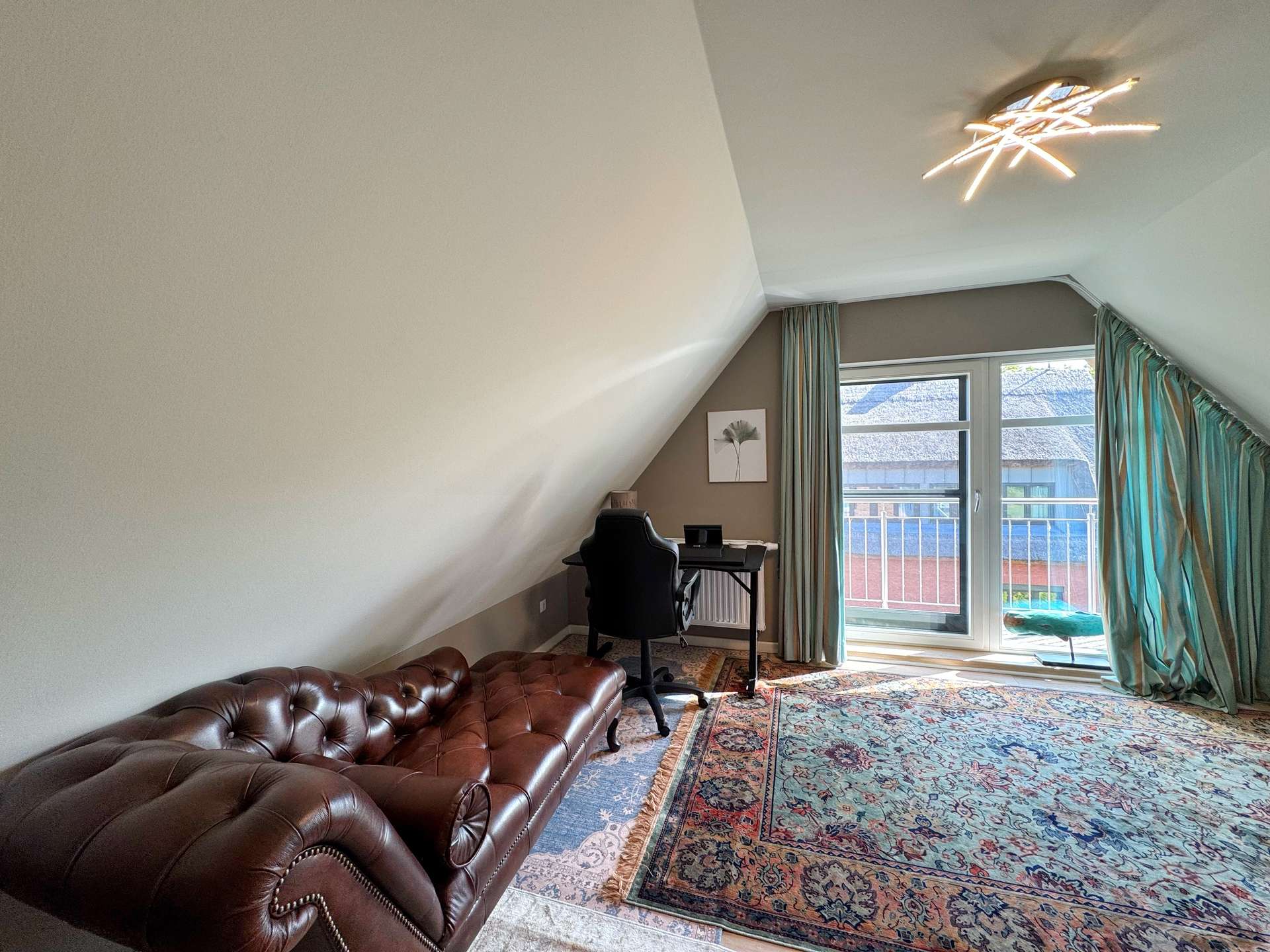 Der ausgebaute Spitzboden in beiden Haushälften schafft zusätzlichen Wohnraum in besonderer Atmosphäre. Unter den Dachschrägen befindet sich jeweils ein weiteres Schlafzimmer mit eigenem Duschbad – ein idealer Bereich für Gäste oder als privater Rückzugsort.