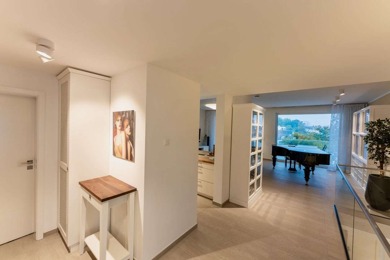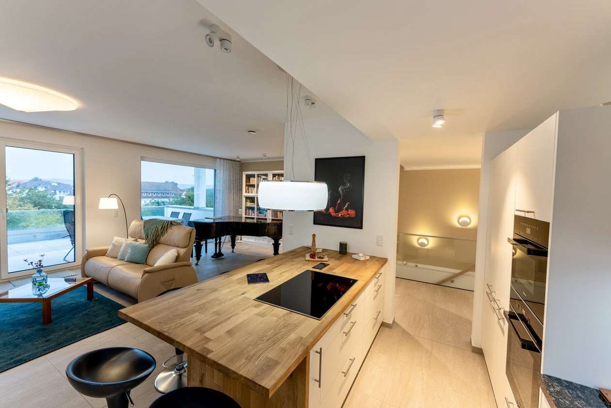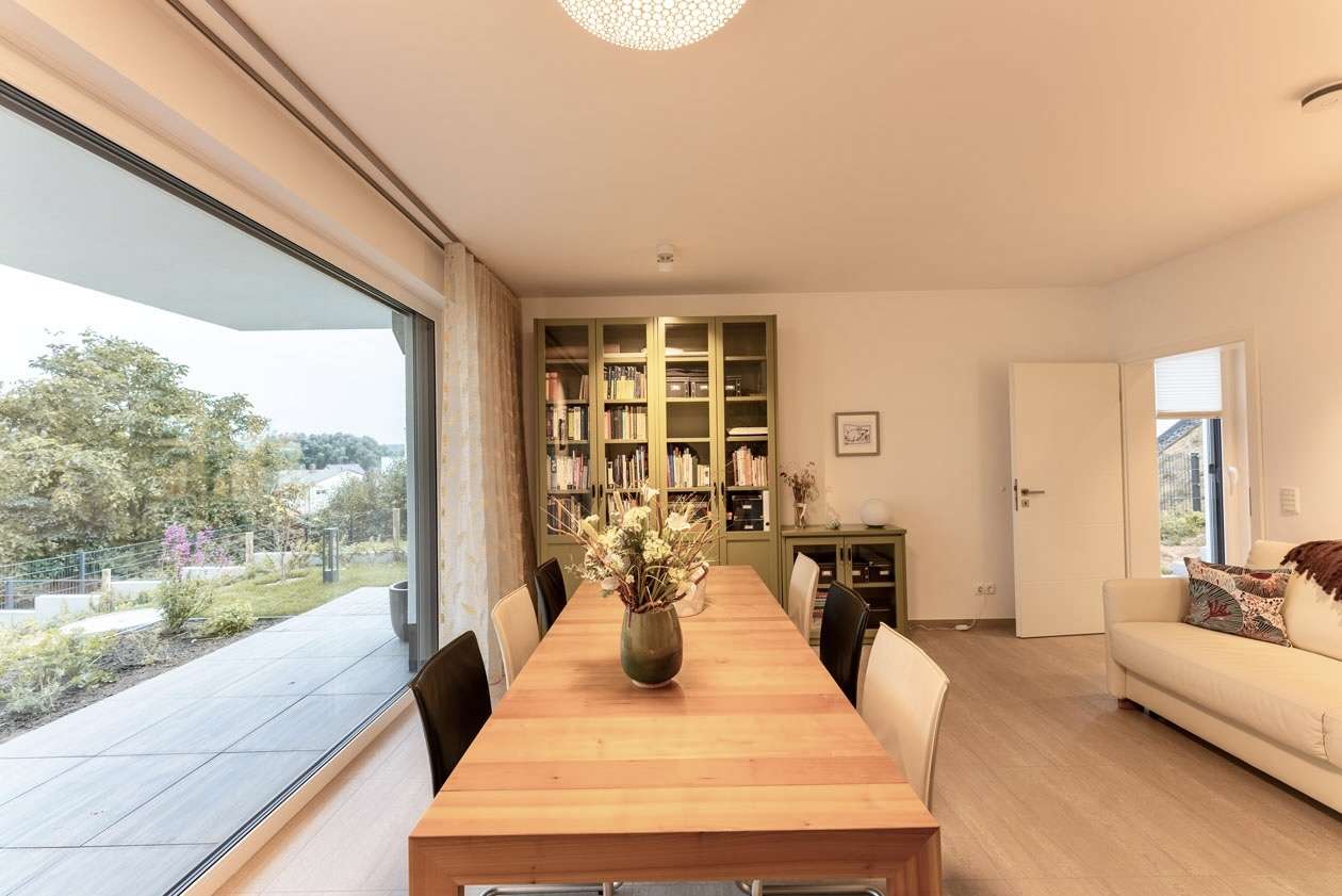 Die detailreiche Ausstattung zeugt von höchstem Qualitätsbewusstsein mit feinem Gespür für zeitlose Eleganz. Eine exklusive Einbauküche mit Miele-Geräten, großformatige, edel strukturierte Feinsteinzeugböden sowie ein stilvoll integrierter Gaskamin schaffen ein Ambiente von höchster Wohnqualität. Ergänzt wird das Interieur durch ein vollintegriertes Smart-Home-System, das Temperatur- und Beleuchtungsregelung sowie das Öffnen und Schließen der Fenster intuitiv über eine zentrale, digital vernetzte Steuerung ermöglicht. Komplettiert wird diese Spitzenimmobilie durch einen Carport mit angrenzendem Abstellraum direkt vor dem Haus.