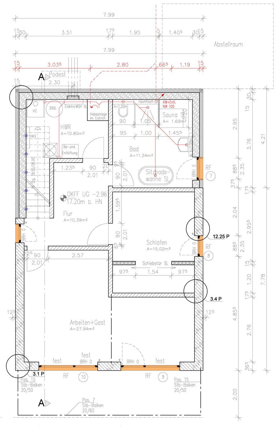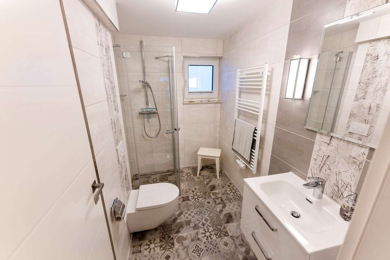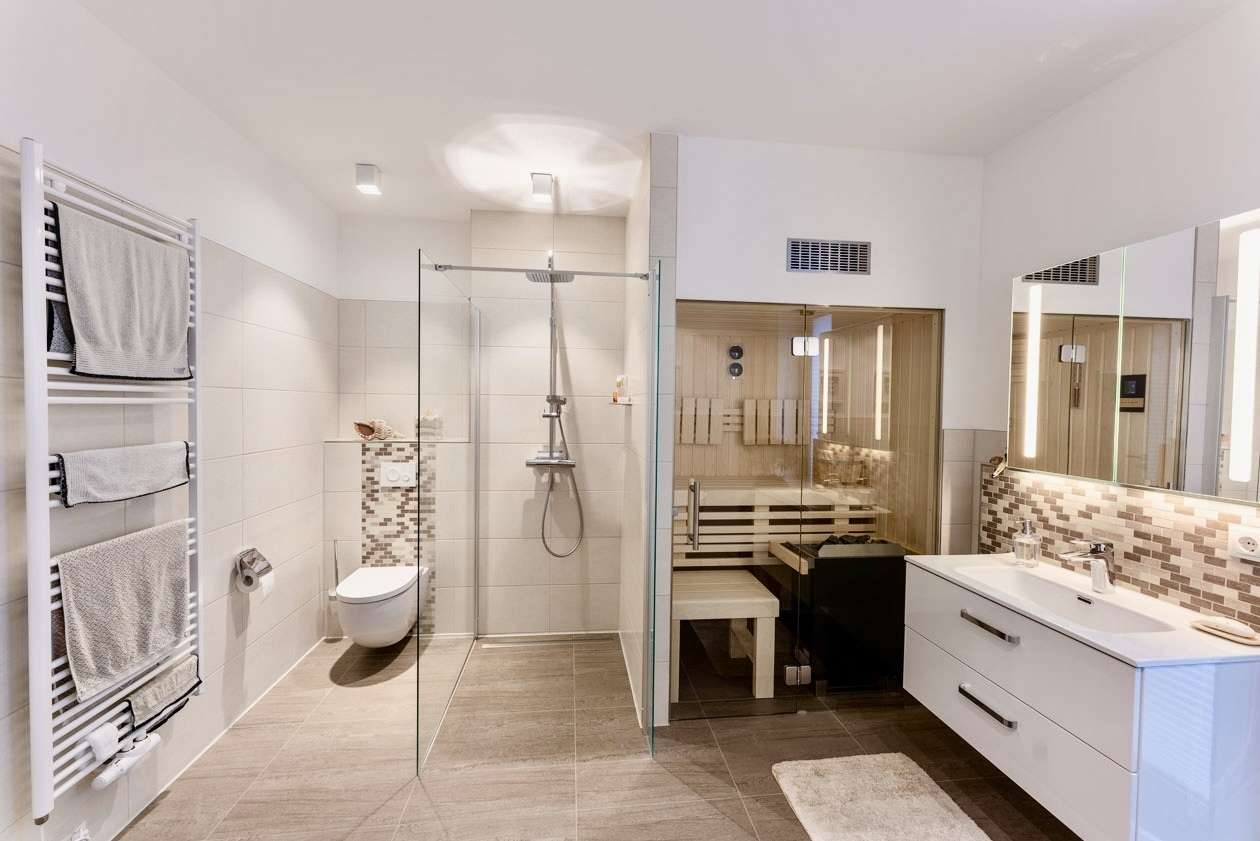 1 Vollbad (Badewanne + Dusche) zzgl. Sauna im Untergeschoss