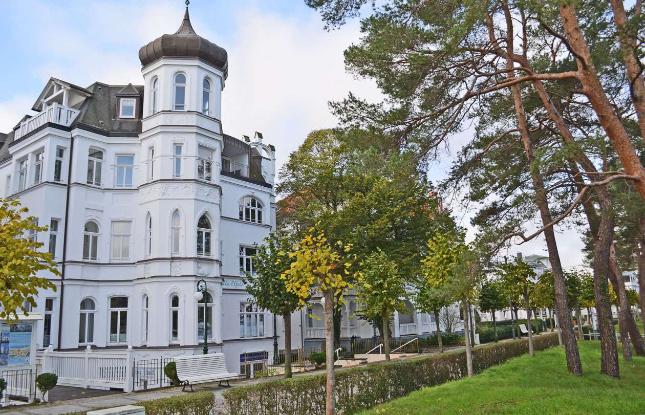 Die Villa Elfeld befindet sich in direkter Strandlage im Ostseebad Binz. Fußläufig sind Strand und Seebrücke, Einkaufsmöglichkeiten sowie zahlreiche Restaurants und Cafés zu erreichen.