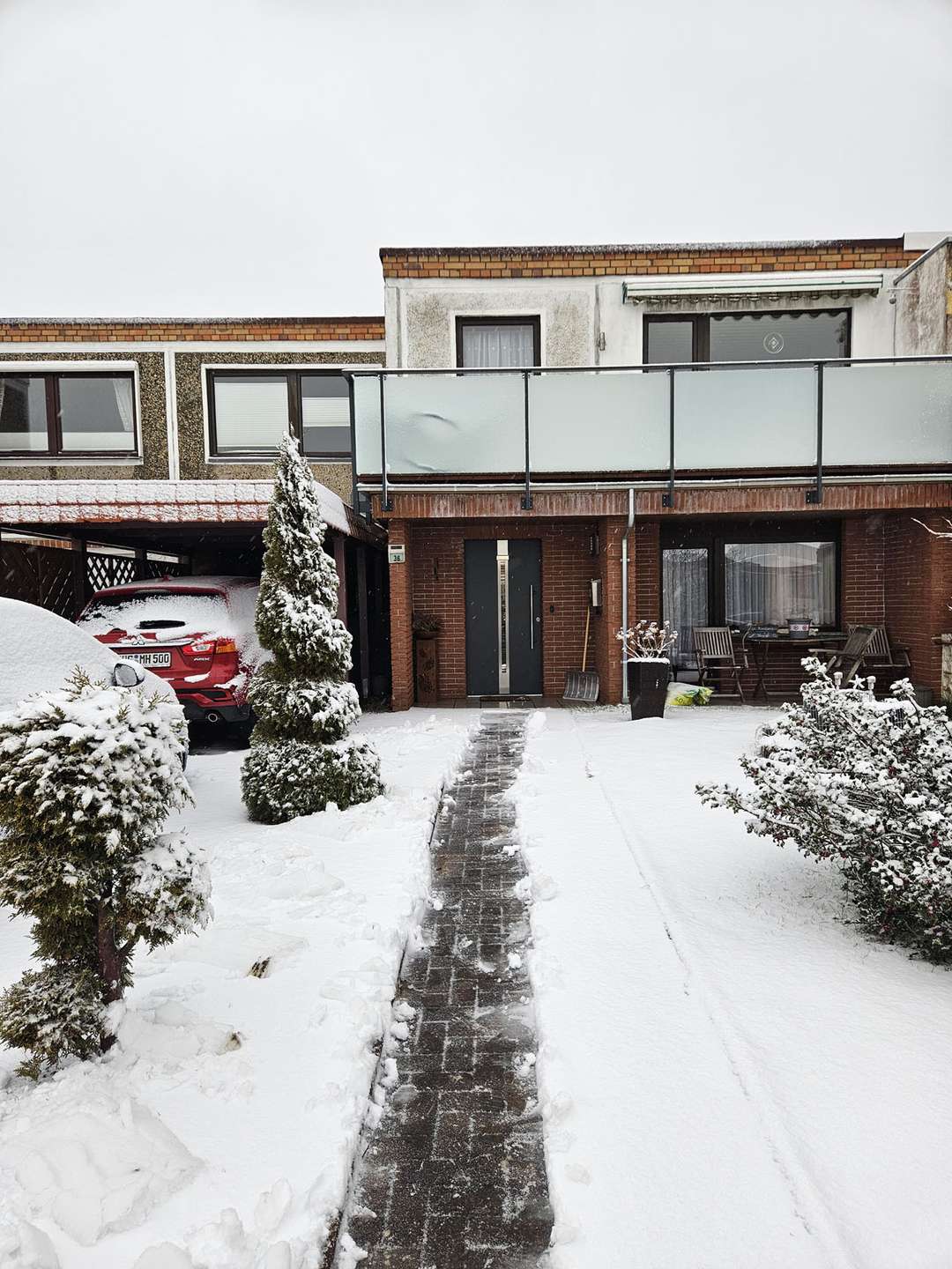 Ein Carport, eine Garage sowie ein zusätzlicher Außenstellplatz sorgen für komfortable Parkmöglichkeiten. Ein separater Abstellraum und der HWR bieten zusätzlichen Stauraum und funktionale Ergänzungen im Alltag.