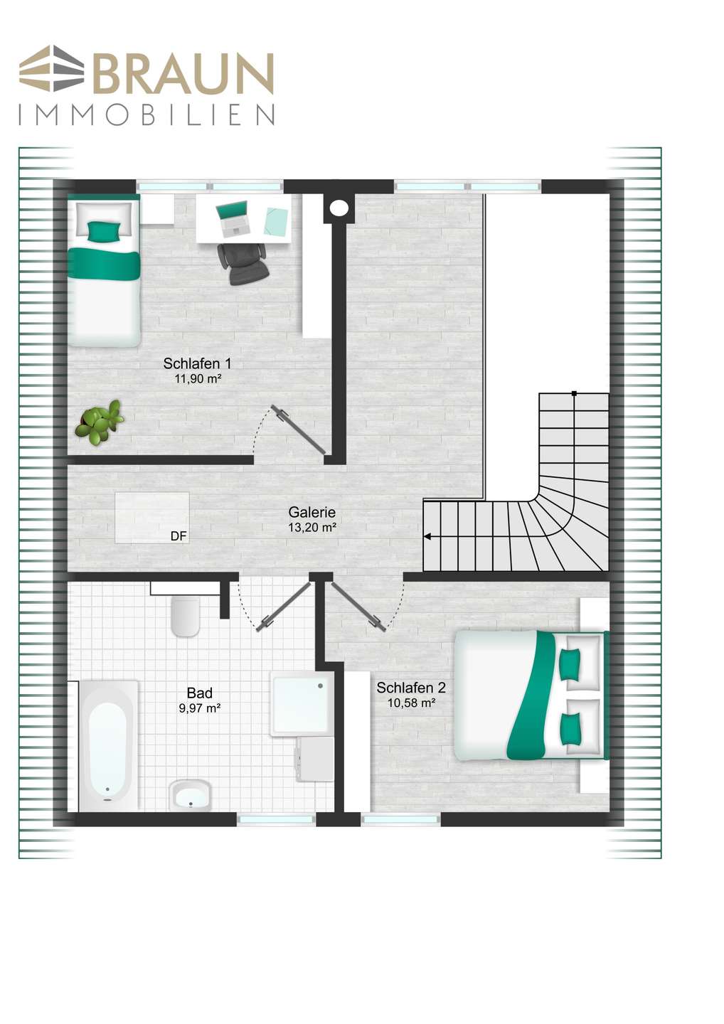 Die Wohnfläche erstreckt sich auf ca. 92 m² über zwei Ebenen und verbindet Komfort mit durchdachter Raumaufteilung.