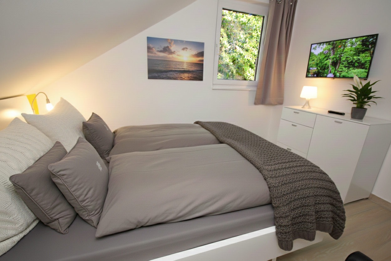 Das Haus verfügt über drei gemütliche Schlafzimmer, davon eines im Erdgeschoss und zwei im Obergeschoss.