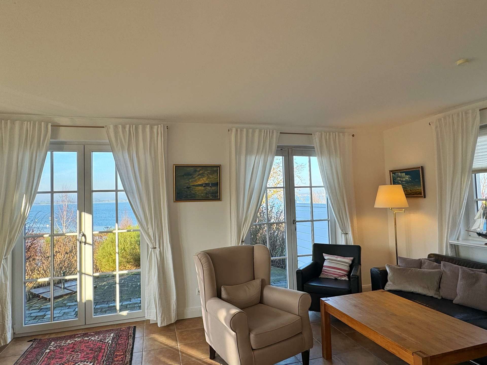 Die großen Panoramafenster eröffnen einen direkten Blick aufs Wasser und verleihen dem gesamten Erdgeschoss eine helle und einladende Atmosphäre. Sie schaffen eine harmonische Verbindung zwischen Innen- und Außenbereich und ermöglichen zu jeder Tageszeit ein einzigartiges Wohngefühl mit beeindruckender Aussicht.