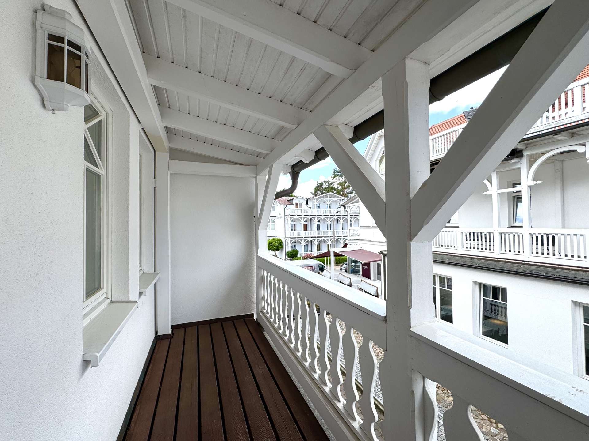 Großzügiger, überdachter Balkon mit seitlichem Ostseeblick