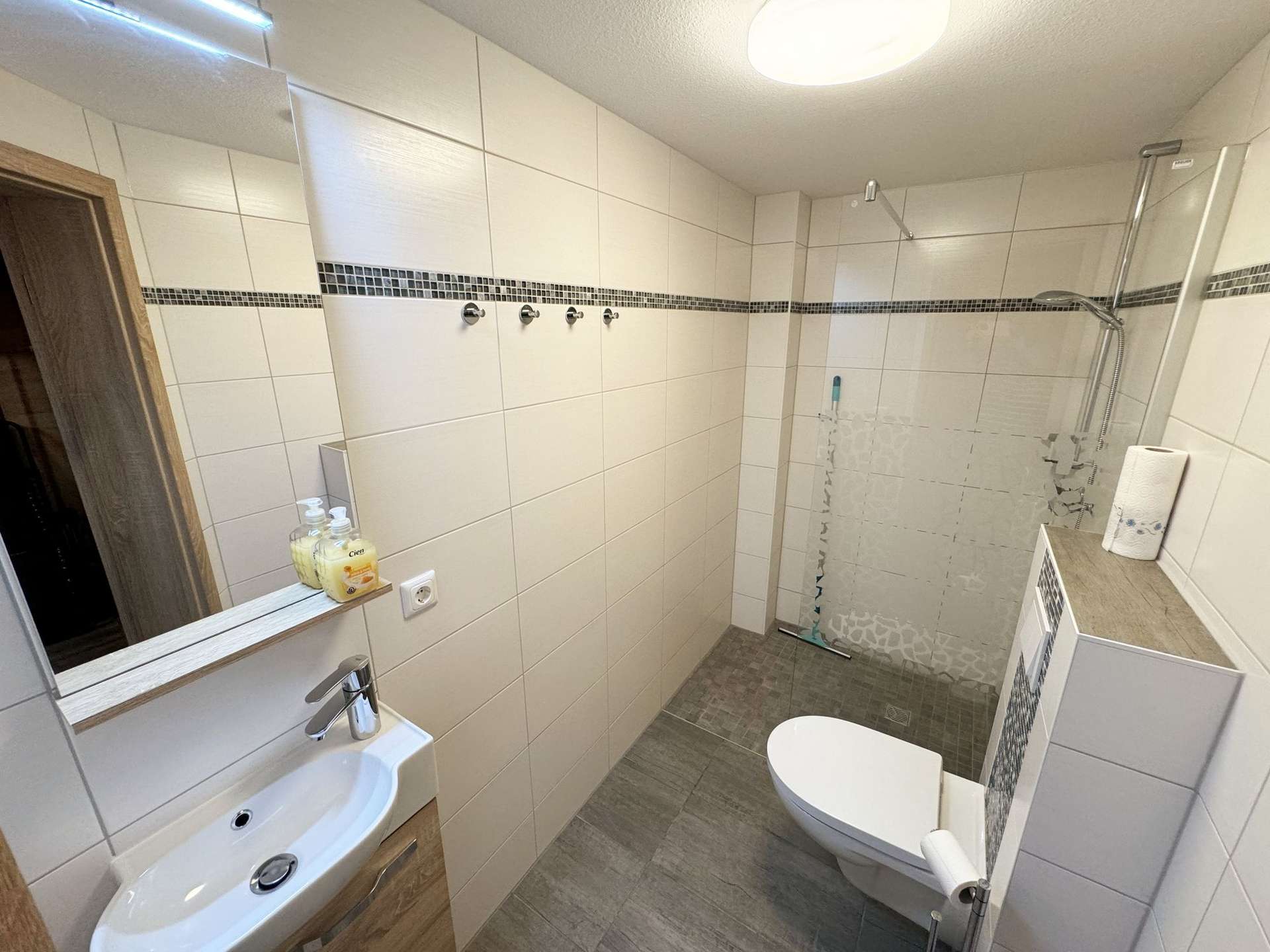 - Badezimmer mit Badewanne und Dusche
