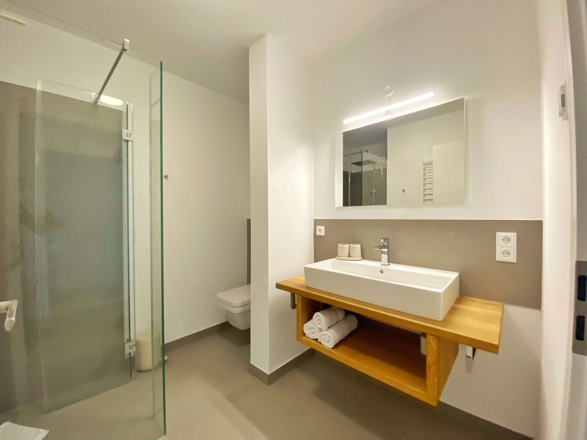 Die komfortable Gemeinschaftssauna befindet sich im rückwärtigen Gebäudebereich des Erdgeschosses.